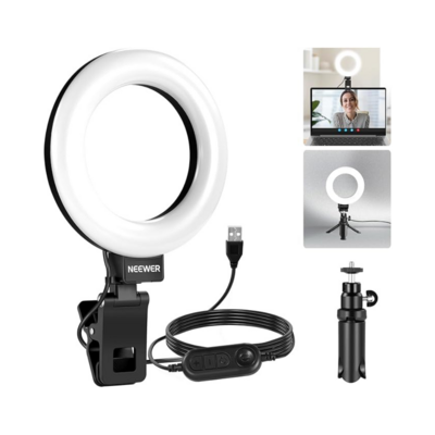 NEEWER 5" Ring Light is the little clip-on light I love to make video calls and recordings look instantly more polished.